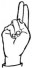 На ћирилици написано МИОДРАГ ДАМЈАНОВ састоји се из 15 слова [?]. Исписано ћириличном једноручном азбуком за глувонеме: